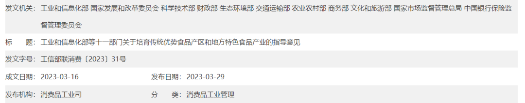 關于培育傳統優勢食品產區和地方特色食品產業的指導意見