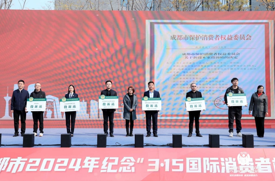 活動現場,市消委會為6家消費教育基地和6家投訴站進行了授牌,并向成都市消費糾紛調解實踐與培訓基地授牌;全市13家企業代表上臺發布“科學綠色消費”倡議。市消委會重點介紹了2024年消費維權新舉措,并正式上線啟動全國消協智慧315平臺。現場還為廣大消費者開設30余個消費服務與咨詢展位,涉及食品、藥品、化妝品,產品質量、計量與知識產權、金融消費等相關知識。