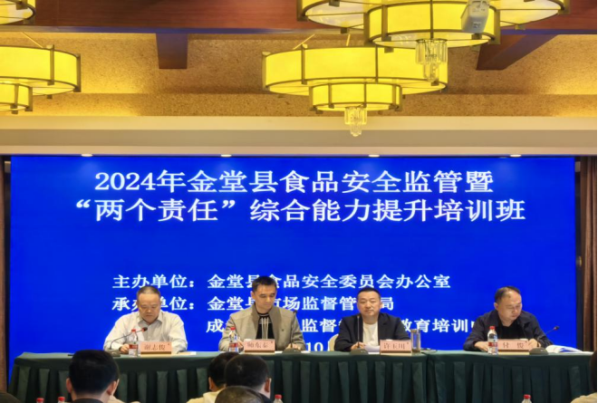 2024年10月10日,金堂縣2024年食品安全監管暨“兩個責任”綜合能力提升培訓班正式開班,成都市市場監管局食品流通處處長師東泰、金堂縣委常委、政法委書記許玉川出席開班儀式并講話,淮州新城黨工委委員、管委會副主任,縣政府黨組成員謝志俊主持開班儀式,縣食安辦主任、縣市場監管局局長付俊作培訓安排,各鎮(街道)、縣級相關部門分管食品安全同志、具體負責人和市場監管部門相關人員共計70余人參加。