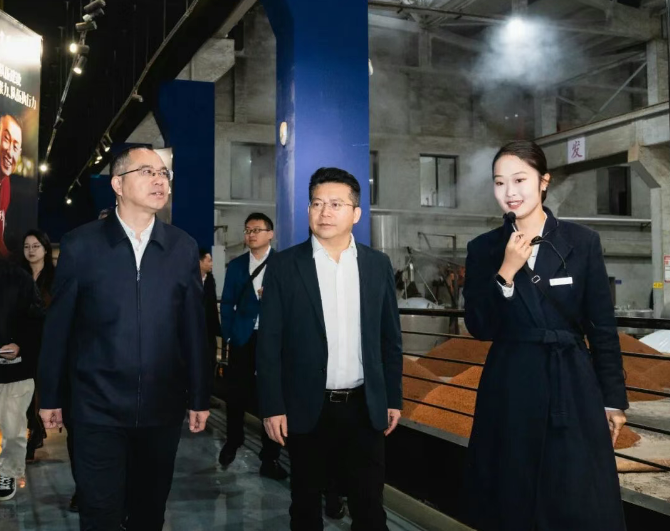 重陽釀秋色,醬香迎客來。10月29日,五糧液股份公司黨委副書記、副董事長、總經理華濤率隊到貴州珍酒參觀考察,并圍繞醬酒釀造工藝、市場拓展、酒旅融合等進行交流。珍酒李渡集團總工程師、貴州珍酒釀酒有限公司總經理朱國軍陪同。