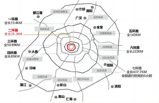 成都的環(huán)線并未止步于三環(huán)。早已通車的繞城高速,在2017年被正式更名為“四環(huán)路”,全長(zhǎng)85公里,從最初的遠(yuǎn)郊高速演變?yōu)槌鞘袃?nèi)部的交通環(huán)線。正在建設(shè)的“五環(huán)路”(成環(huán)路),規(guī)劃全長(zhǎng)142.5公里,定位為“超級(jí)環(huán)線”,將串聯(lián)起更多新興城區(qū)。而全長(zhǎng)223公里的“六環(huán)路”(第二繞城高速),則已連接起成都12個(gè)區(qū)(市)縣,將城市發(fā)展的觸角伸向更廣闊的區(qū)域。